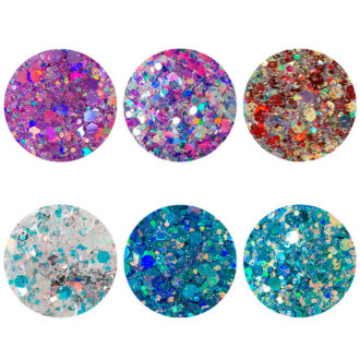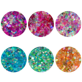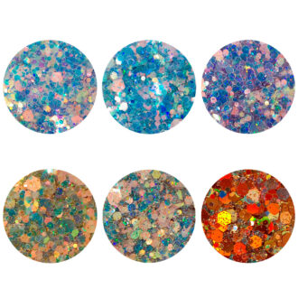 Kit Glitter com 6 unidades para decorações de unhas. Glamm Collection