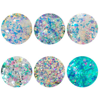 Kit Glitter com 6 unidades para decorações de unhas. Ice Drop