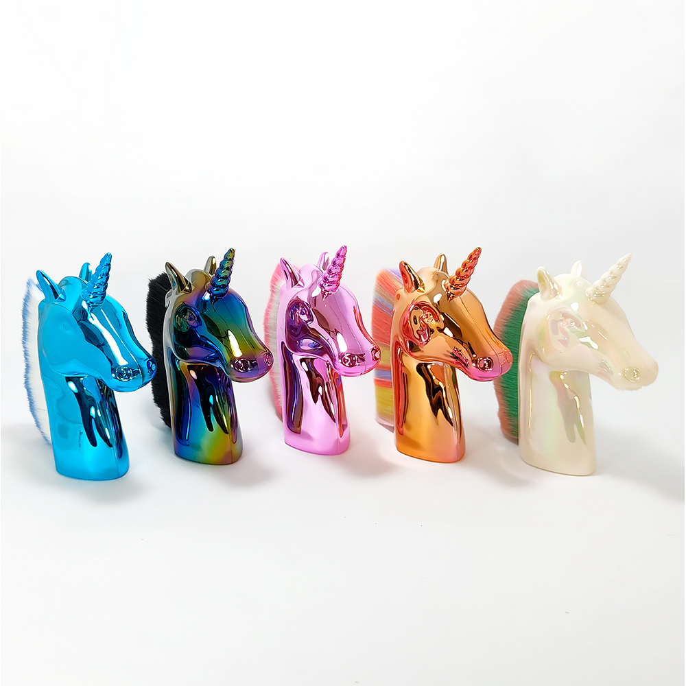Espanador unicórnio para unhas e maquiagem, diversas cores.