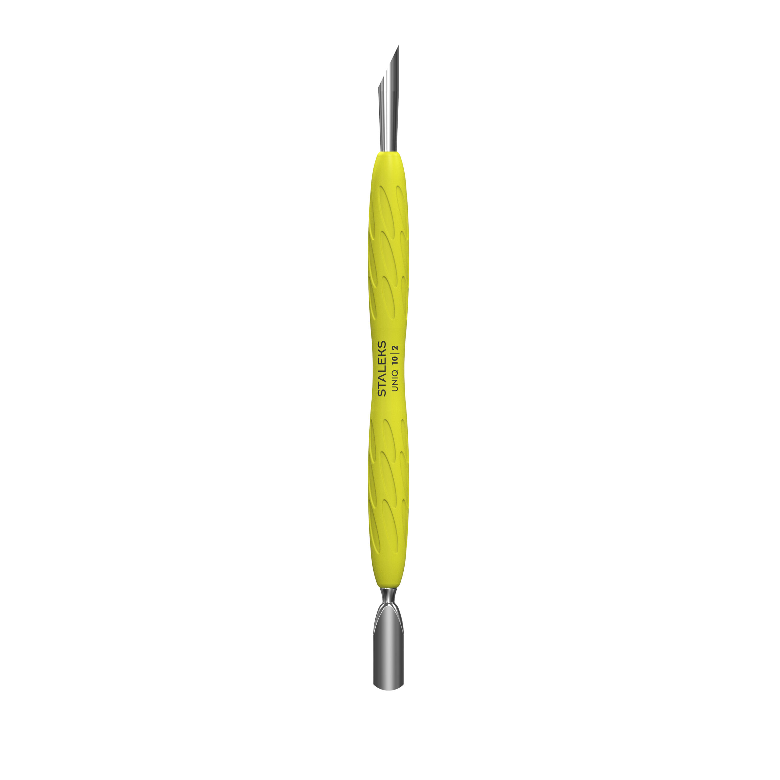 Espátula de Manicure Staleks – GUMMY Amarela – Série UNIQ – PQ-10-2 – Empurrador Arredondado e Pau de Laranjeira