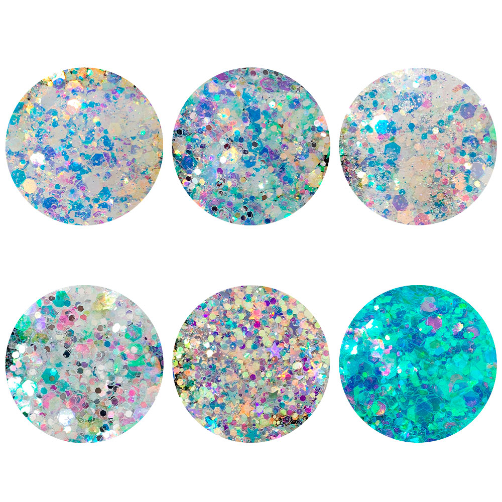 Kit Glitter com 6 unidades para decorações de unhas.