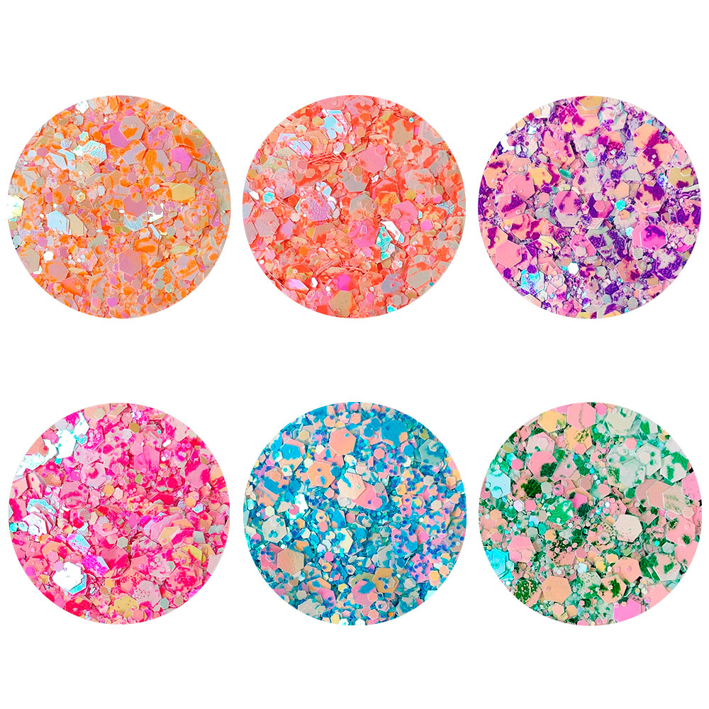 Kit Glitter com 6 unidades para decorações de unhas.