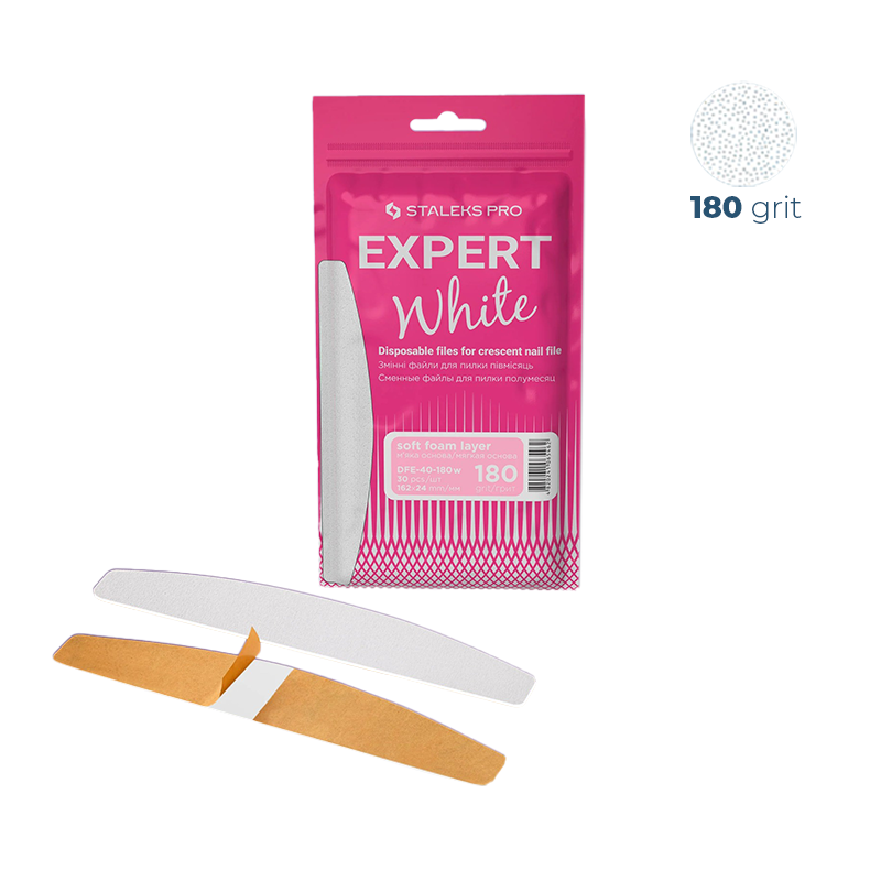 - Grão 180, indicado para correção, modelagem e acabamento de unhas naturais e artificiais;