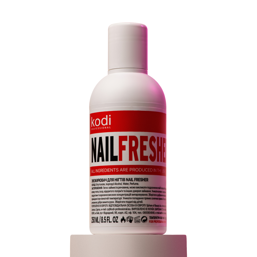 O desengordurante de unhas Nail Fresher em formato ampliado e atualizado com capacidade para 250 ml irá ajudá-lo a enfrentar esta tarefa. O produto remove com eficácia a gordura, removendo resíduos e partículas de sujeira das unhas naturais, dissolvendo o filme lipídico. Nail Fresher é parte integrante do sistema de aplicação de vernizes e bases em gel, do processo de construção e modelagem. Prepara as placas ungueais para interação adequada com revestimentos artificiais, garantindo estabilidade e durabilidade do resultado.